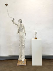 Die große Figur ist das Gegenstück zu einer kleinen Skulptur mit derselben Haltung, die 32 cm misst mit dem Titel: Luftige Gedanken xs trägt.